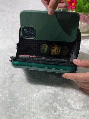 Εξοπλισμένο με αποσπώμενο λουρί καρπού και ρυθμιζόμενο ιμάντα ώμου, μπορεί να φορεθεί ως χιαστί τσάντα ή τσάντα χειρός.