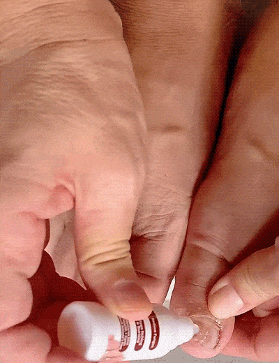 Καθαρίστε το προσβεβλημένο νύχι. Λιμάρετε απαλά την επιφάνεια για να διεισδύσει βαθιά το προϊόν.