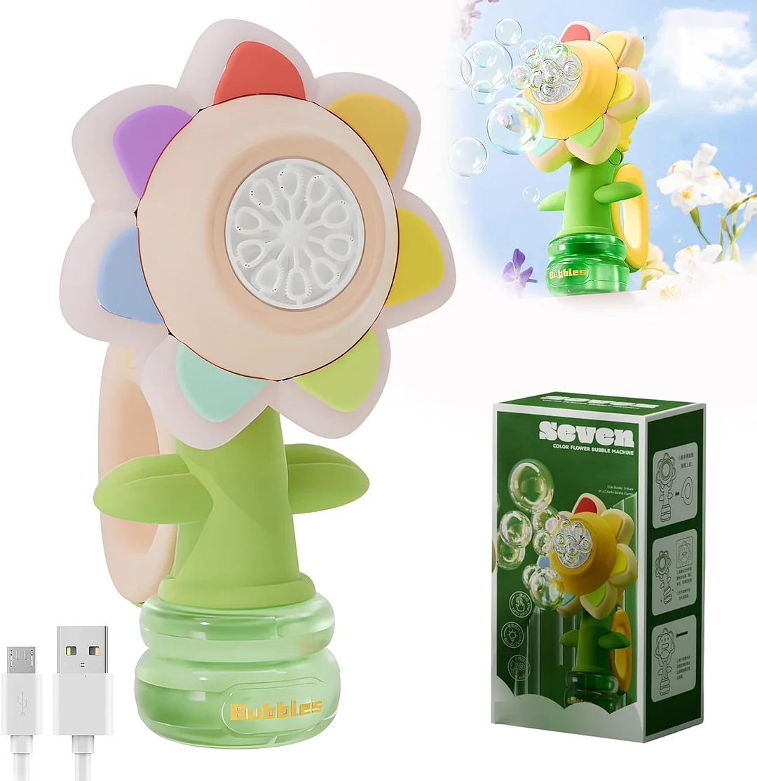 【Γοητευτικό σχέδιο λουλουδιών, εκθαμβωτικά φώτα LED, ζωηρός χορός】Αυτό το πιστόλι φυσαλίδων διαθέτει σχέδιο λουλουδιού και γοητευτικά φώτα LED, κάνοντας τις φυσαλίδες να χορεύουν σαν να έχουν ζωντανέψει. Είτε κάτω από τον ήλιο είτε στα αστέρια, αυτό το πιστόλι φυσαλίδων θα σας φέρει μια μαγική εμπειρία!