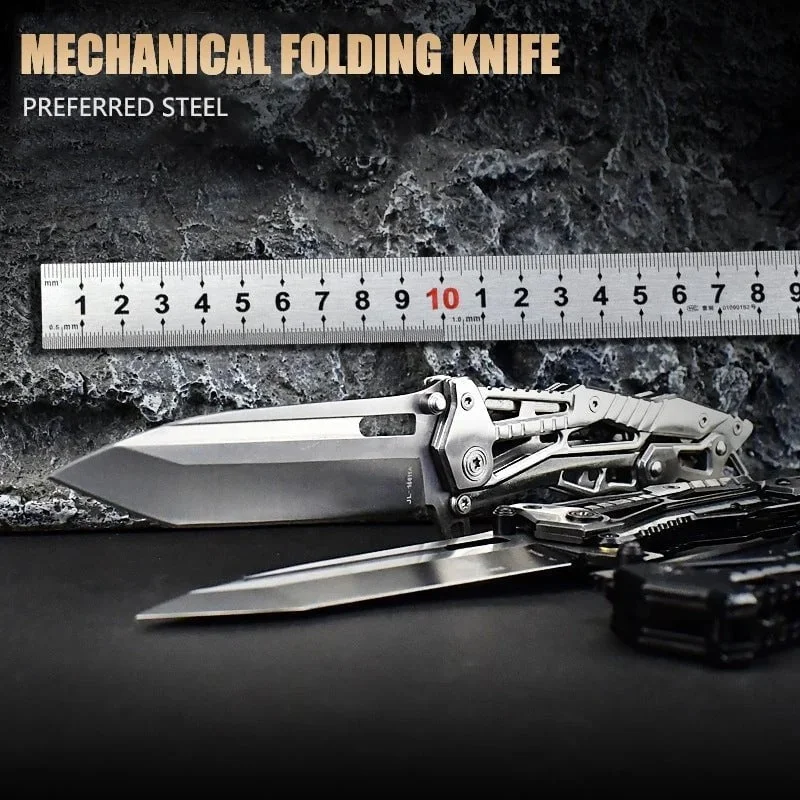 【Μηχανικός Σχεδιασμός】: Αυτό το προϊόν υιοθετεί μηχανικό σχεδιασμό αναδίπλωσης και κλιπ πλάτης, που σας επιτρέπει να αφήνετε ελεύθερα τα χέρια σας και είναι εύκολο στη μεταφορά. Η ενίσχυση με πριτσίνια κάνει το μαχαίρι πιο ανθεκτικό και λιγότερο πιθανό να πέσει.