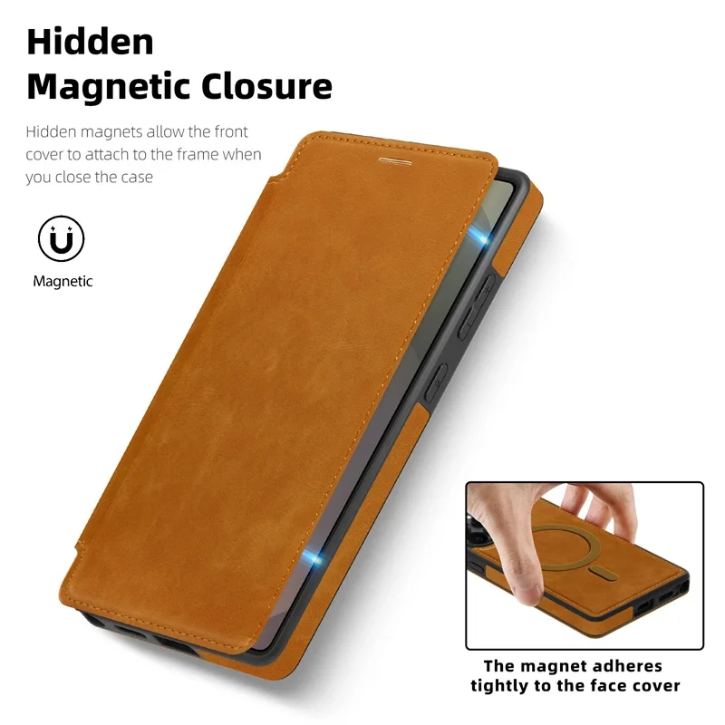 Αυτή η κομψή θήκη πορτοφολιού με αναδιπλούμενο μηχανισμό αποτελεί τον τέλειο συνδυασμό στυλ και λειτουργικότητας. Κατασκευασμένη από δέρμα υψηλής ποιότητας, διαθέτει συμβατότητα με θύρα φόρτισης MagSafe, ασφαλές μαγνητικό κούμπωμα, πολλαπλές υποδοχές καρτών και πλήρη προστασία σώματος για να διατηρείτε το τηλέφωνό σας προστατευμένο. Είτε κάνετε δουλειές είτε παρακολουθείτε μια συνάντηση, η MagPort διατηρεί τα απαραίτητα αντικείμενά σας οργανωμένα.